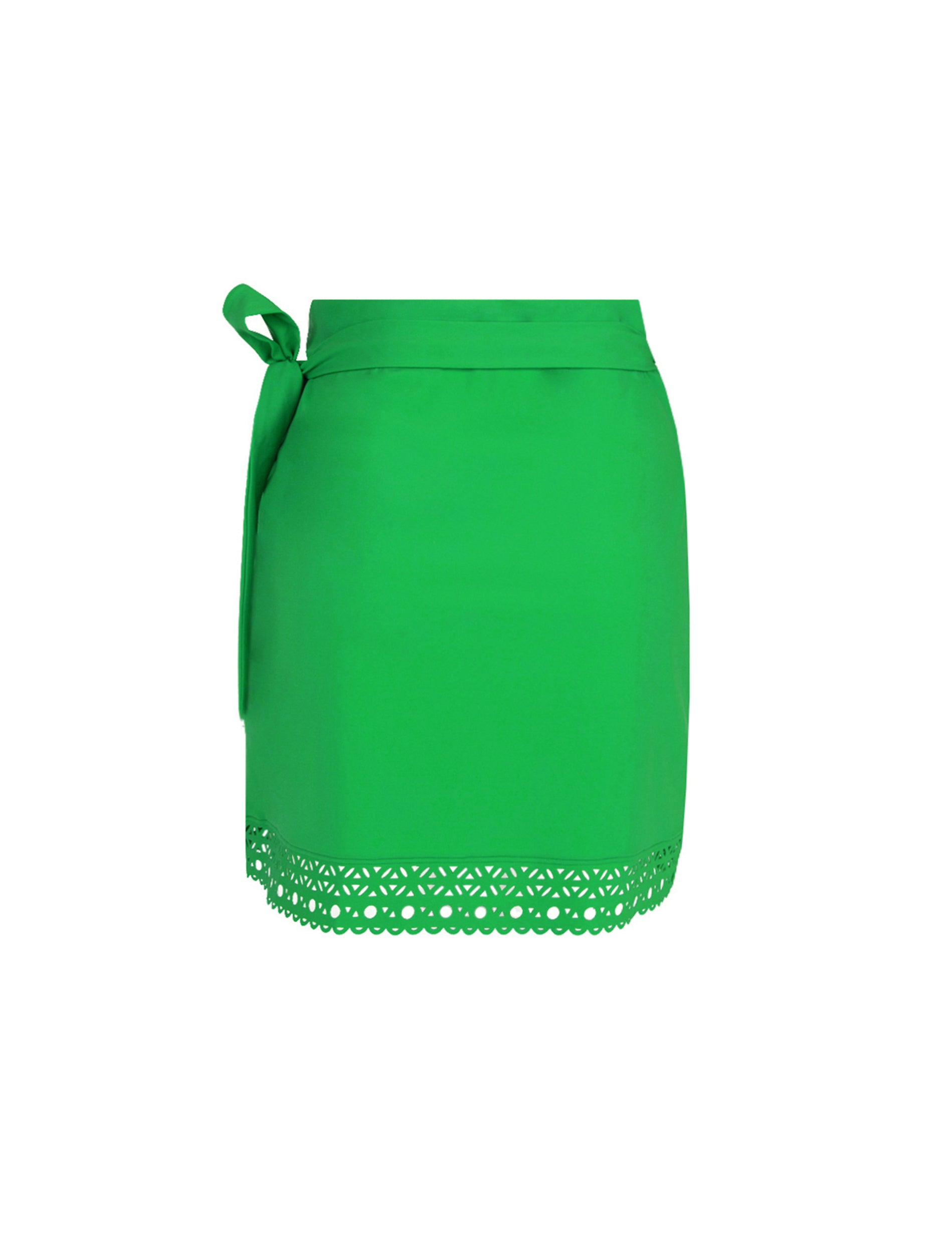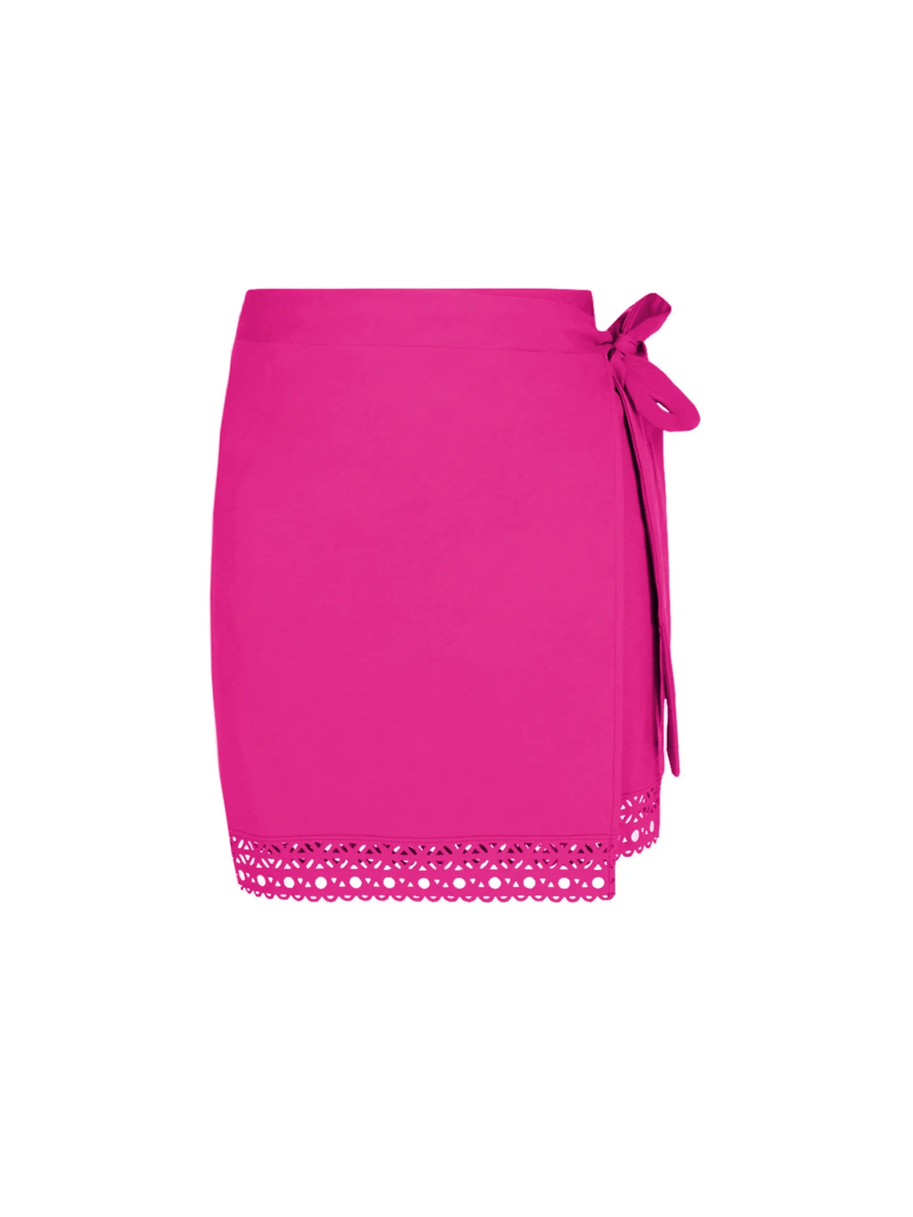 Wraparound sarong adorned with a delicate sheer band at the bottom.