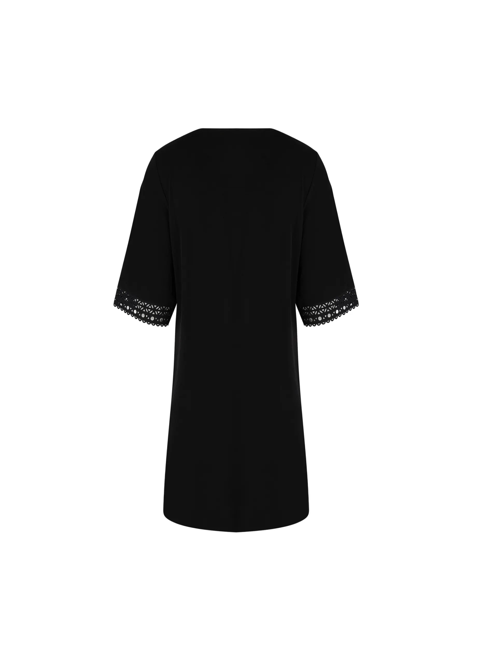 Opaque maille tunic with a neckline and bottom of sleeves in sheer bands