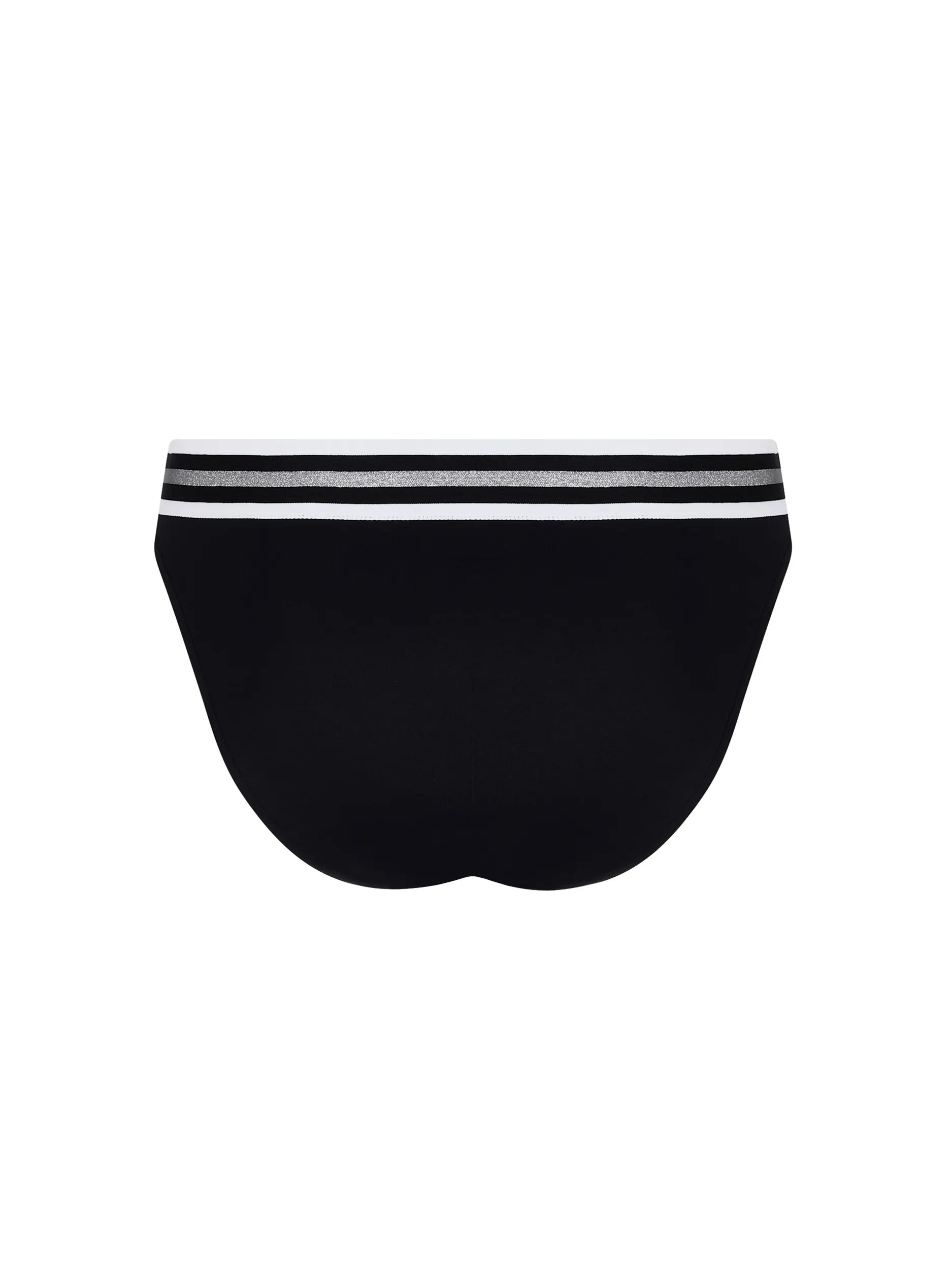 Plain luxurious microfiber bikini bottom made from certified Lycra Sport. A graphic elastic with shiny touches accentuates the waist