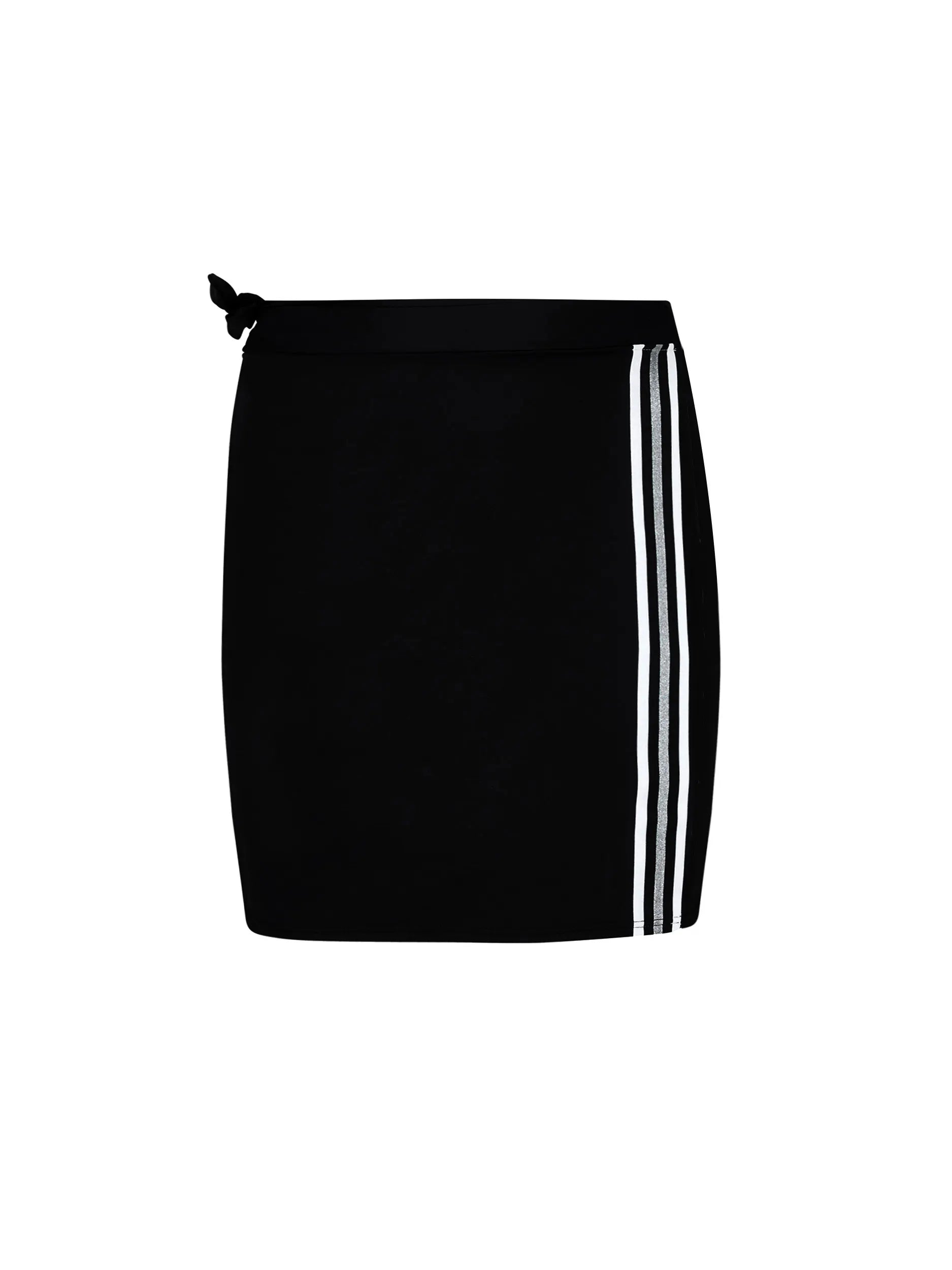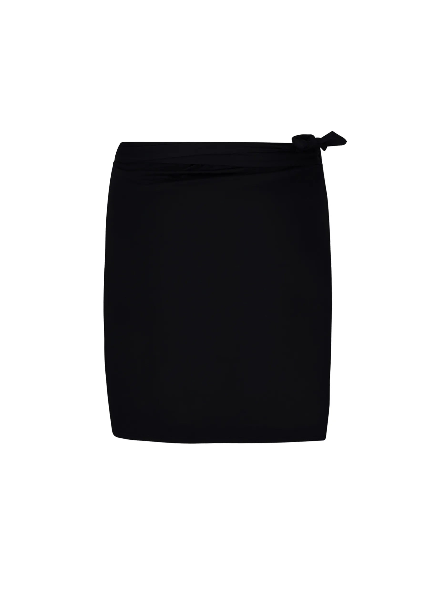 Plain luxurious microfiber sarong skirt. A graphic elastic accentuates the entire front height