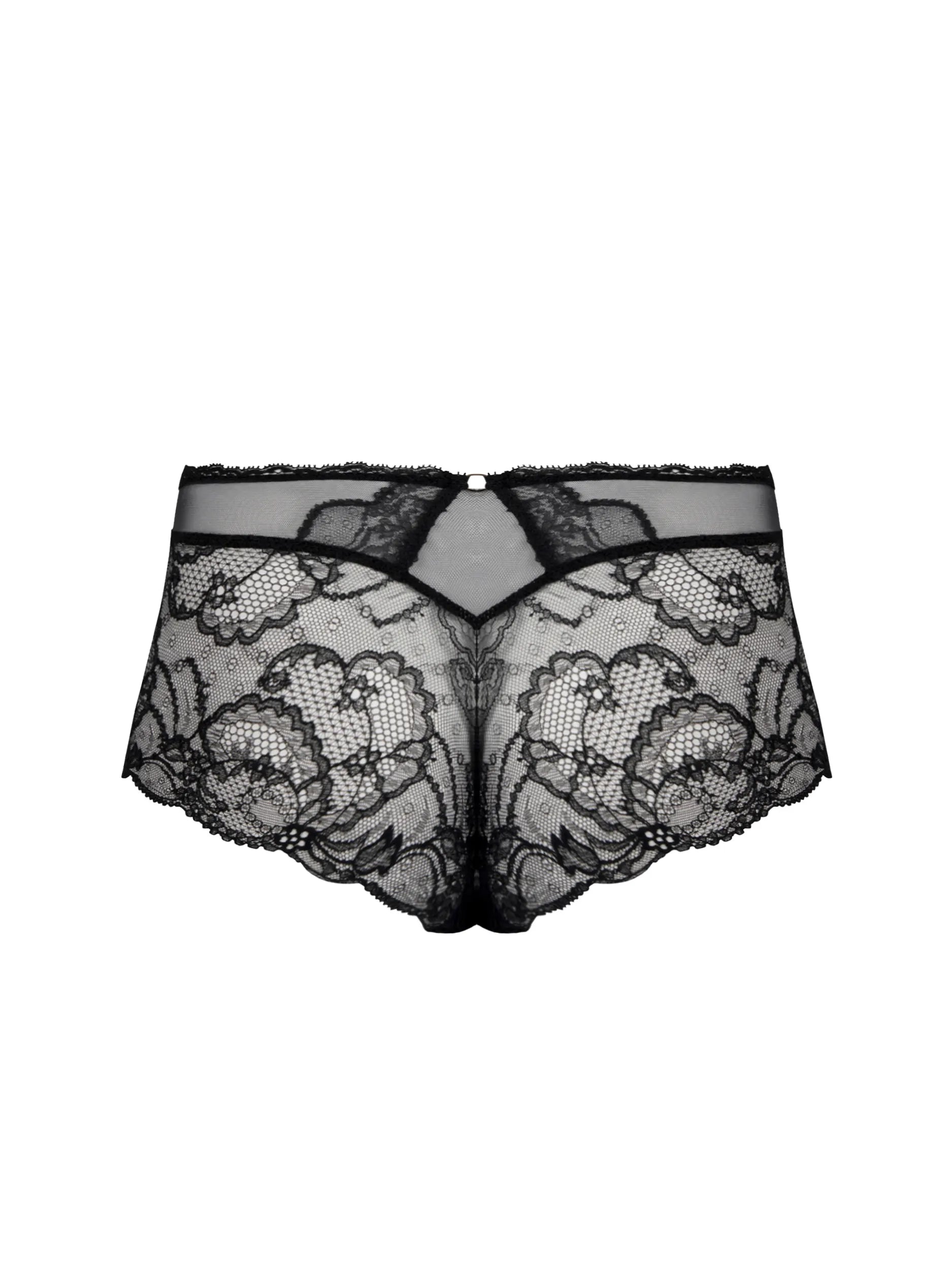 Low-waisted briefs modelled on man's boxer shorts but with a feminine twist.