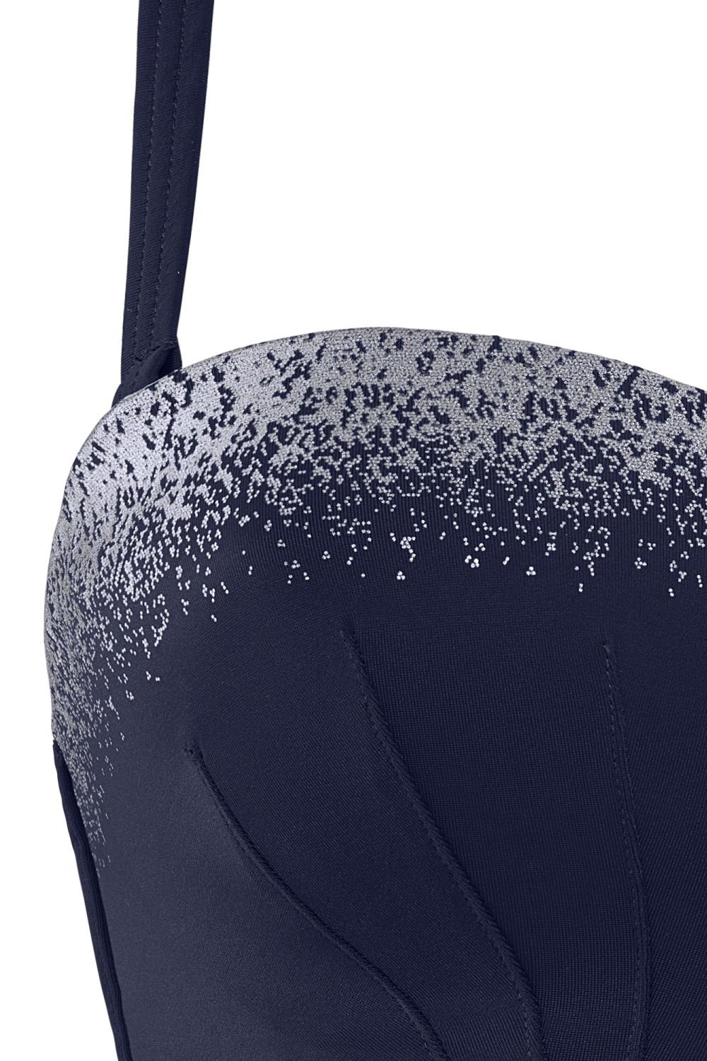 Sparkle like you always should and let the sun shine on your gorgeous curves with this strapless dark blue bikini top with a silver touch.